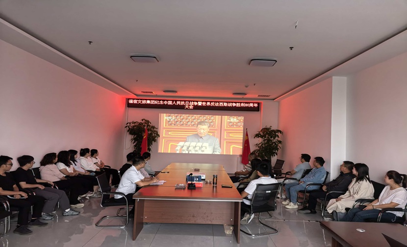 温宿文旅集团全体职工观看纪念中国人民抗日战争暨世界反法西斯战争胜利80周年阅兵式